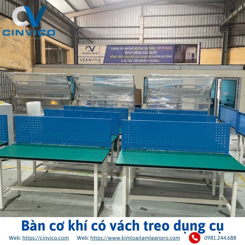 Bàn cơ khí có vách treo dụng cụ là giải pháp tối ưu cho các xưởng sản xuất, gara, phòng kỹ thuật và khu vực lắp ráp. Sản phẩm giúp sắp xếp dụng cụ gọn gàng, dễ thao tác và bảo vệ thiết bị khỏi hư hỏng. Với thiết kế chắc chắn, bền bỉ và thông minh, bàn cơ khí của Cinvico mang đến không gian làm việc hiệu quả, an toàn và chuyên nghiệp.