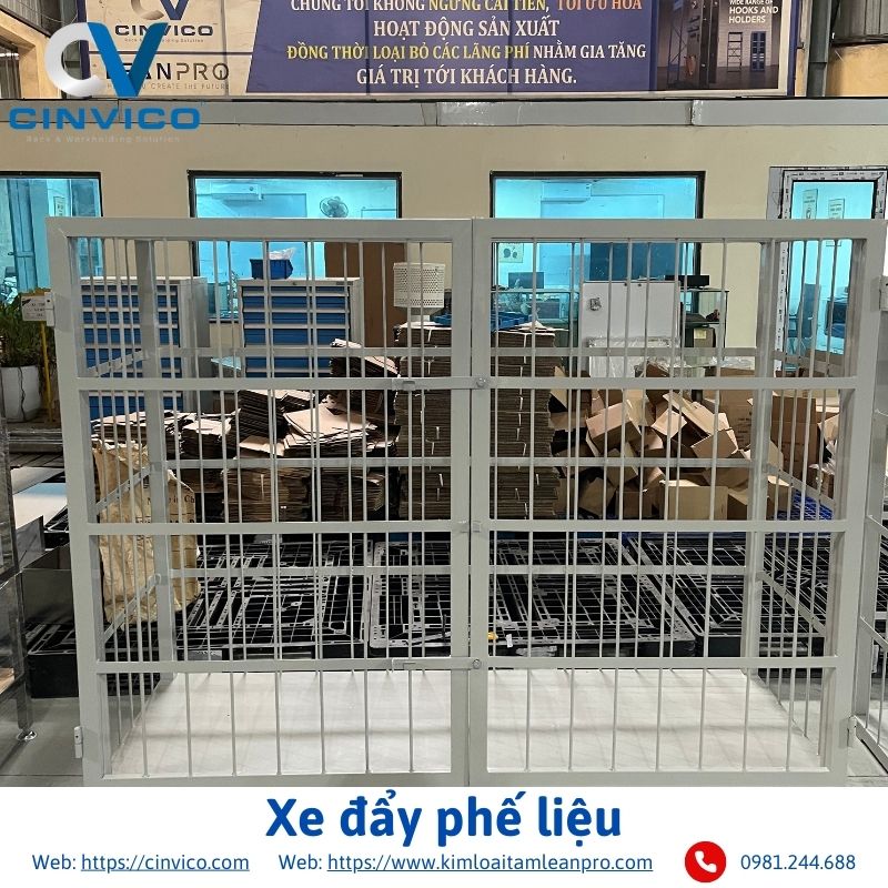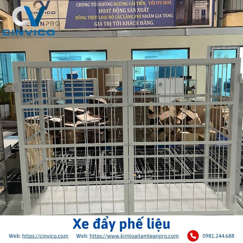 Xe đẩy phế liệu có thể tùy chỉnh kích thước và tải trọng theo nhu cầu của từng xưởng, giúp vận chuyển vật liệu thải hoặc phế liệu công nghiệp một cách an toàn và hiệu quả.